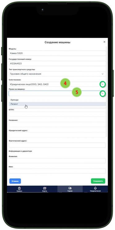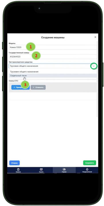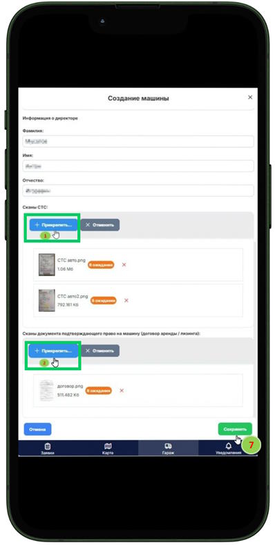 7. Прикрепите копию СТС, договор аренды/лизинга (если ТС в собственности другого лица/организации) и нажмите сохранить