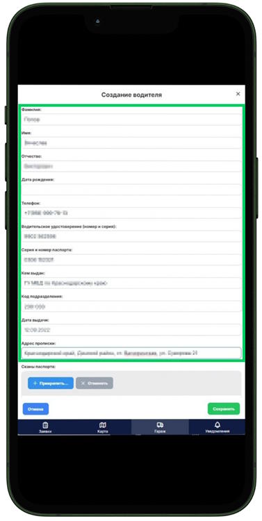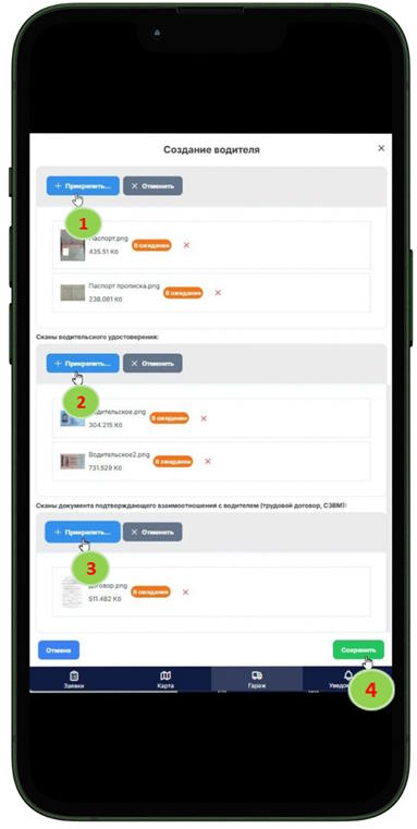 Подкрепите в соответствующие разделы формы копии документов водителя: