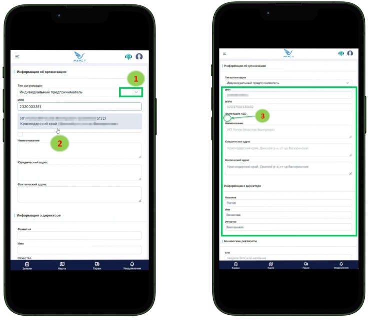 6. Начните внесение данных с ИНН собственника. Cистемой будет предложена организация на основании вводимых данных до полного внесения номера, при выборе необходимой вам организации оставшиеся поля будут заполнены автоматически