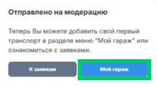 6. Сохраните изменения в нижней части формы, система сообщит о направлении на модерацию. Можно сразу приступить к регистрации вашего автотранспорта и водителей, выбрав «Мой гараж»