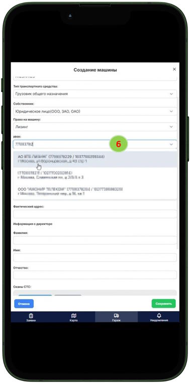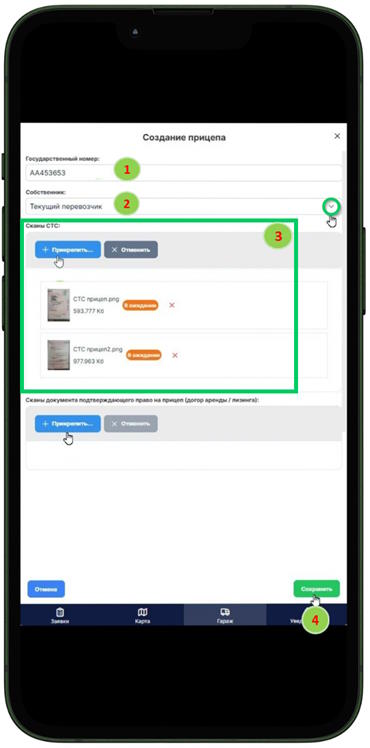 7. Прикрепите копию СТС, договор аренды/лизинга (если ТС в собственности другого лица/организации) и нажмите сохранить