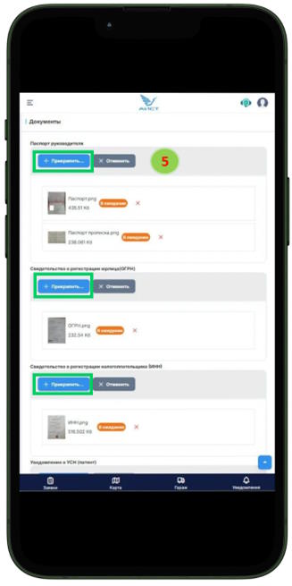 Подкрепите в соответствующие разделы формы копии документов водителя: